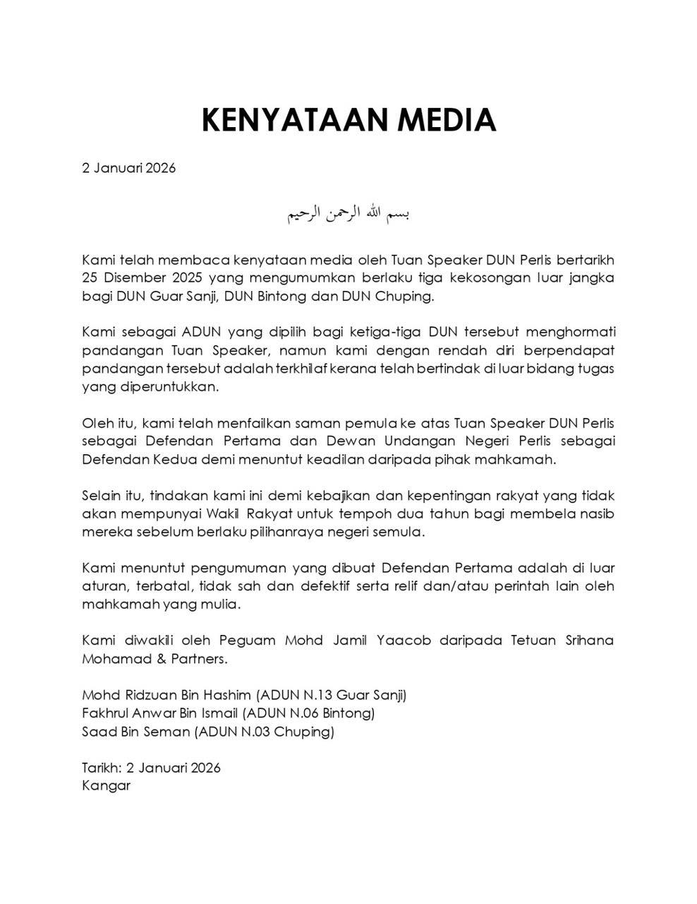 Hari ini, 3 bekas ADUN yang terhenti keahlian PAS telah mengeluarkan kenyataan media untuk mencabar tindakan pengosongan kerusi mereka.